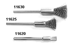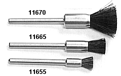 | BROSSES MINIATURES À BOUT DROIT À montage permanent sur une tige d’acier pour un montage rapide sur un outil portable ou flexible. Parfaitement balancées et bien remplies tout autour pour une usure uniforme et une bonne longueur de vie. Fabriquées d’une seule pièce pour empêcher la séparation des pièces pendant l’opération. Disponibles en acier carbone, acier inoxydable, laiton et en soie. Applications suggérées : débavurage léger, le nettoyage de la jonction de deux pièces et léger nettoyage de petites surfaces électroniques. | |||||||||||||||||||||||||||||||||||||||||||||||||